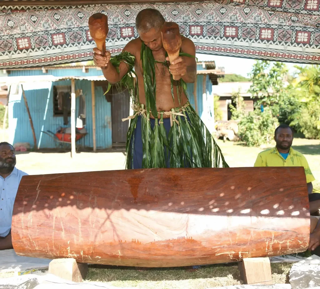 The Tuki Lali beat out the announcement, on a traditional laIi, or wooden drum, that the veiqaravi vakavanua vakaturaga ceremony was about to commence. The chief was on his way and everyone was to assume their position and be ready.