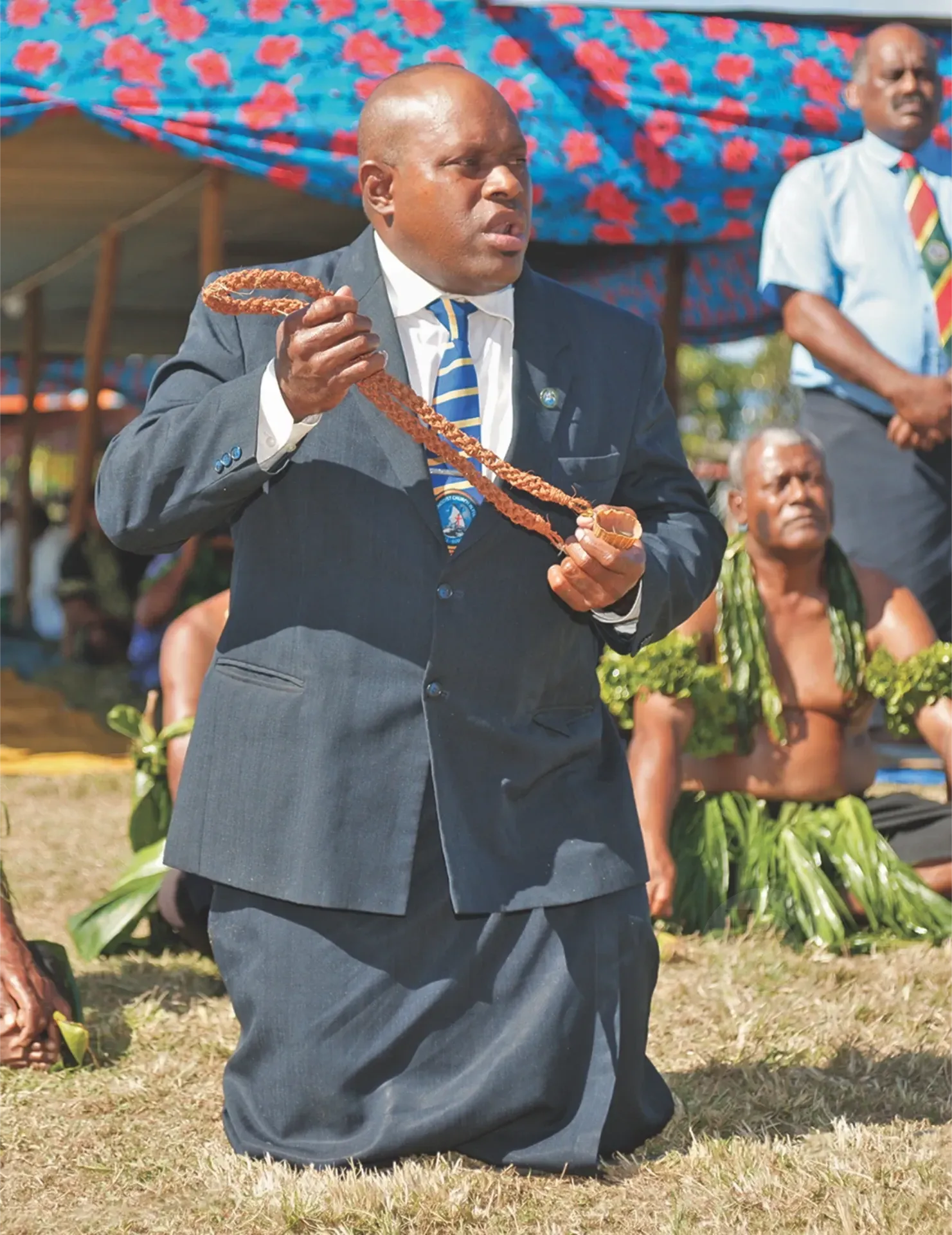The Tui was presented with a second tabua in the qaloqalovi, a reiteration of welcome to him on behalf of the vanua, or people.