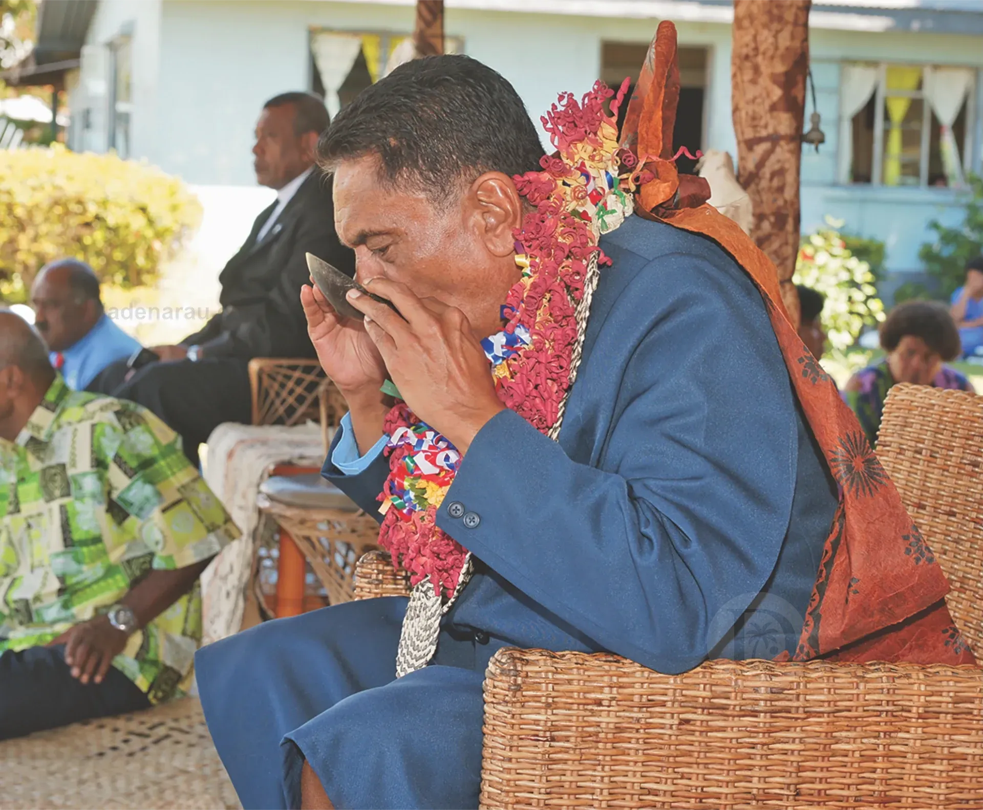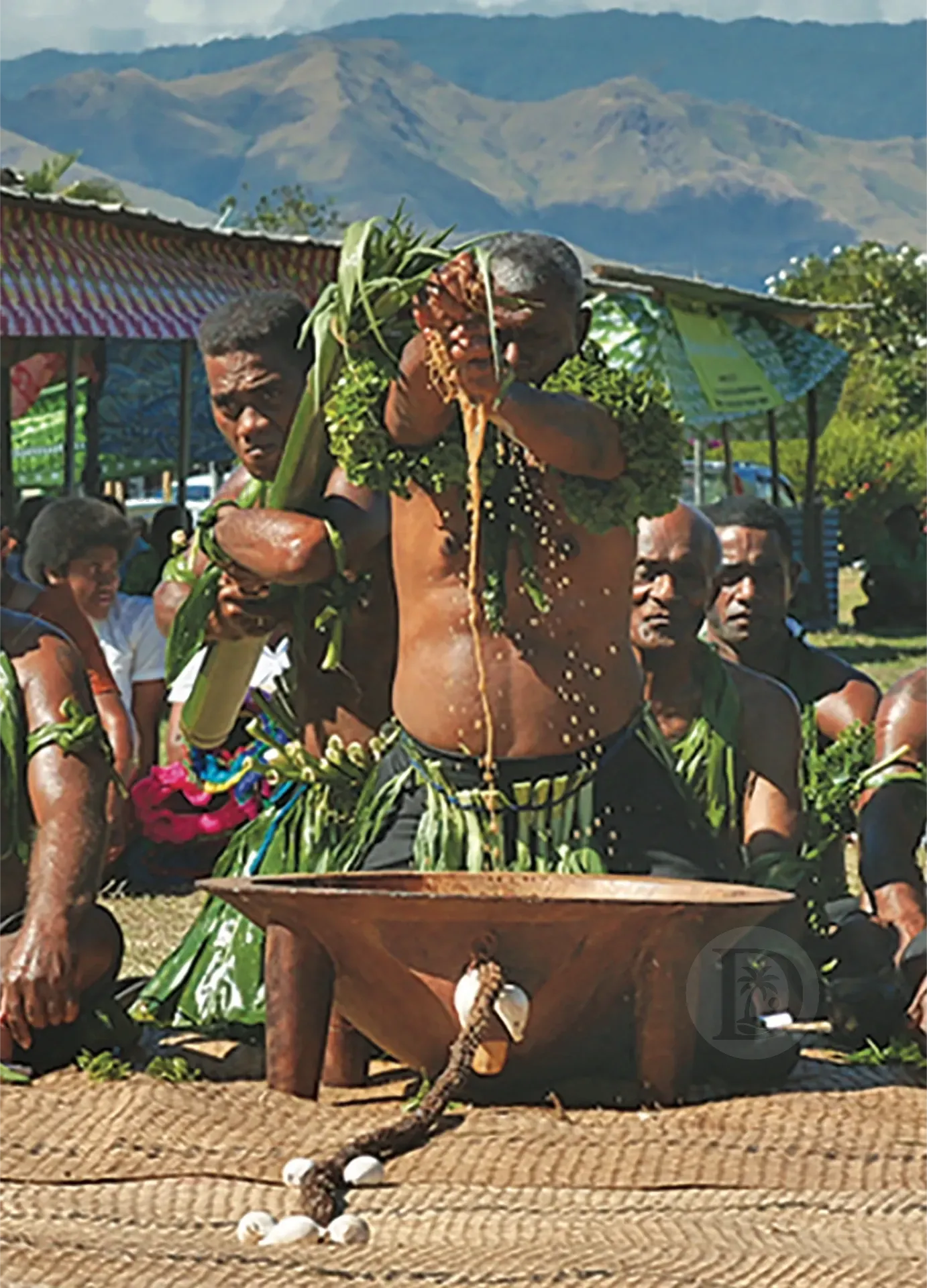 Originally the consumption of yaqona was reserved for chiefs and priests. The offering and serving of yaqona was an expression of respect towards a chief and his position, within which he or she ultimately exercised authority over and responsibility for the life and death and the welfare of their people. But the offering, serving and imbibing of yaqona was not purely secular; it also played a role in the spiritual realm. Yaqona’s mystical attributes helped enable priests to converse with gods and, in cases where such ancestry was claimed, reinforced the semi-divine nature of high chiefs. Given its gravitas within iTaukei culture it is easy to understand why the preparation and serving of yaqona was and is conducted with all the trappings of high ceremony on formal occasions.