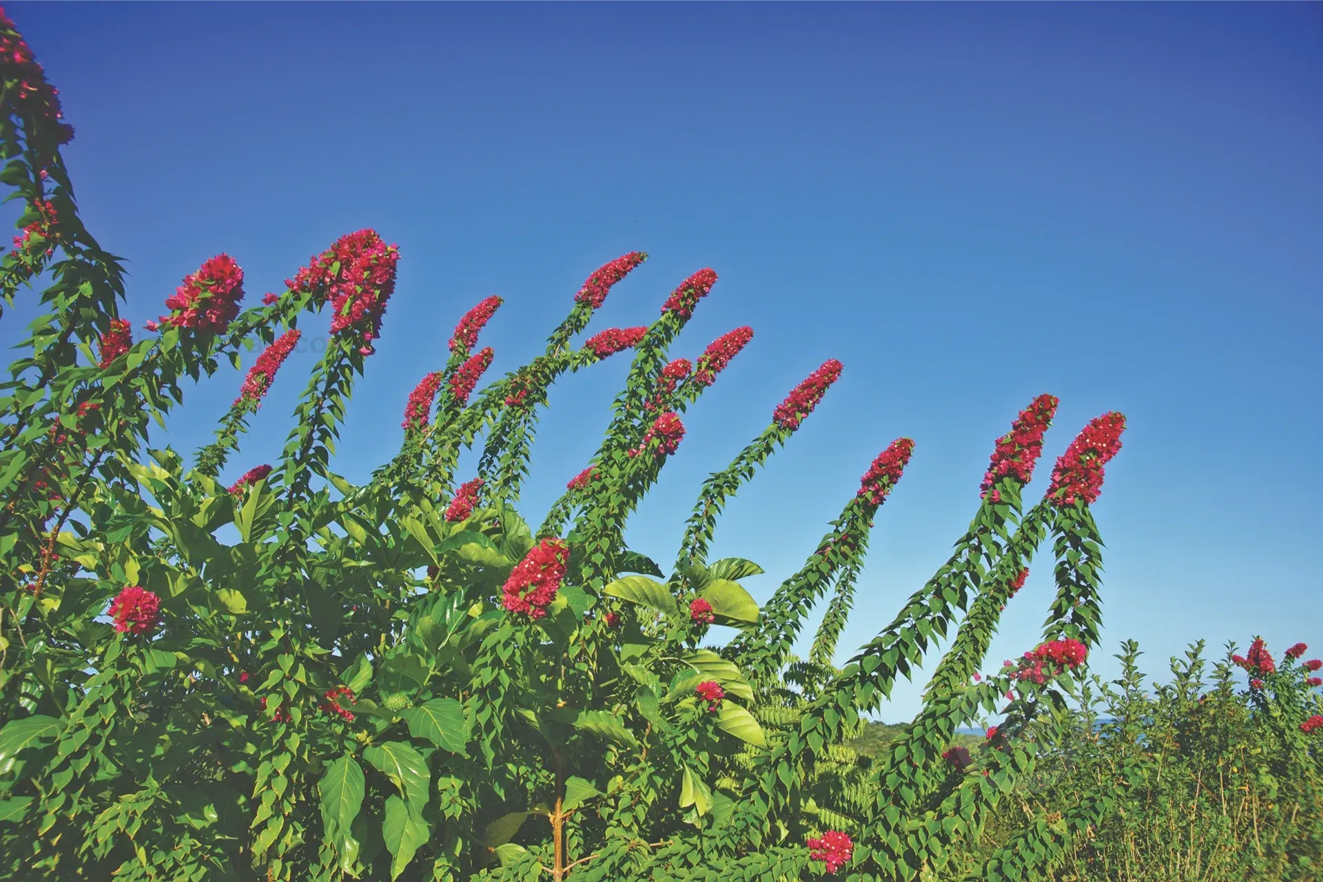 Bougainvilleathrives in Fiji. In drier locations like Denarau and Nadi its blooms are on display practically year-round. It makes fine specimen trees and wonderful hedging around houses. A fact taken fully advantage of by households, Resorts, and urban planners.