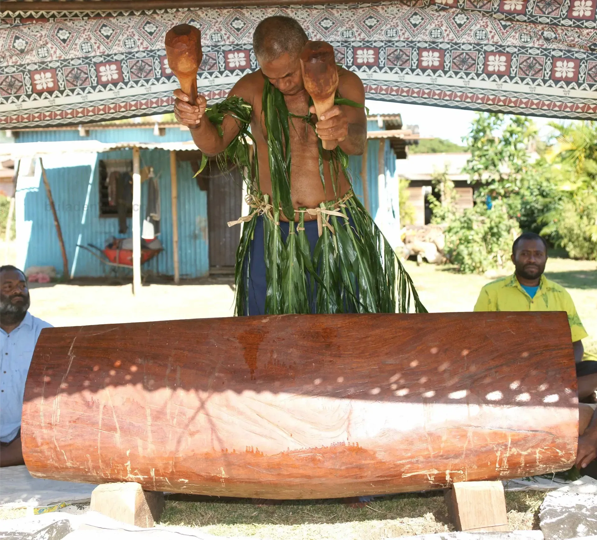 Laliis Fiji’s drum. It is usually made from one of three traditional woods suitable for their acoustic resonance, dilo, tavola and vesi. With roots lying far back in Fiji’s past, lali can be found in all villages in Fiji reflecting a cultural continuity from antiquity to the present day. Lali are beaten for a variety of reasons and the beat identifies the reason. For instance: in times of celebration lali accompany and guide festivities. Upon the receiving of gifts they sounded in acknowledgement.