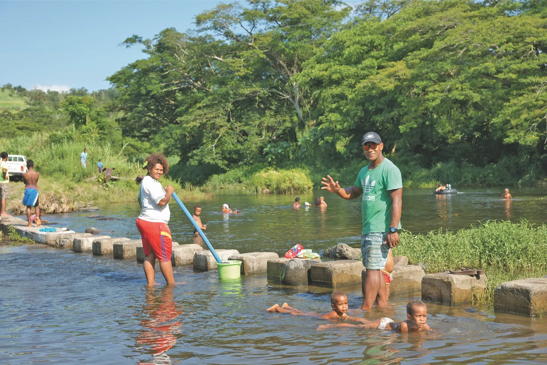 Christmas Day afternoon fun, and clothes washing at the swimming hole.