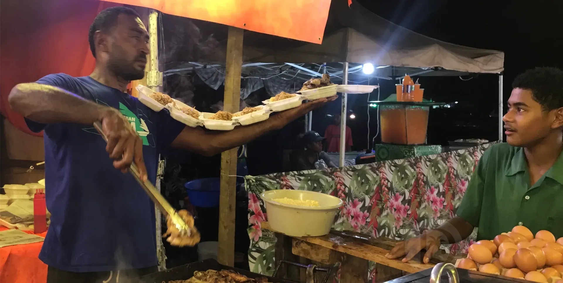 Serving up BBQ on a local carnival night.