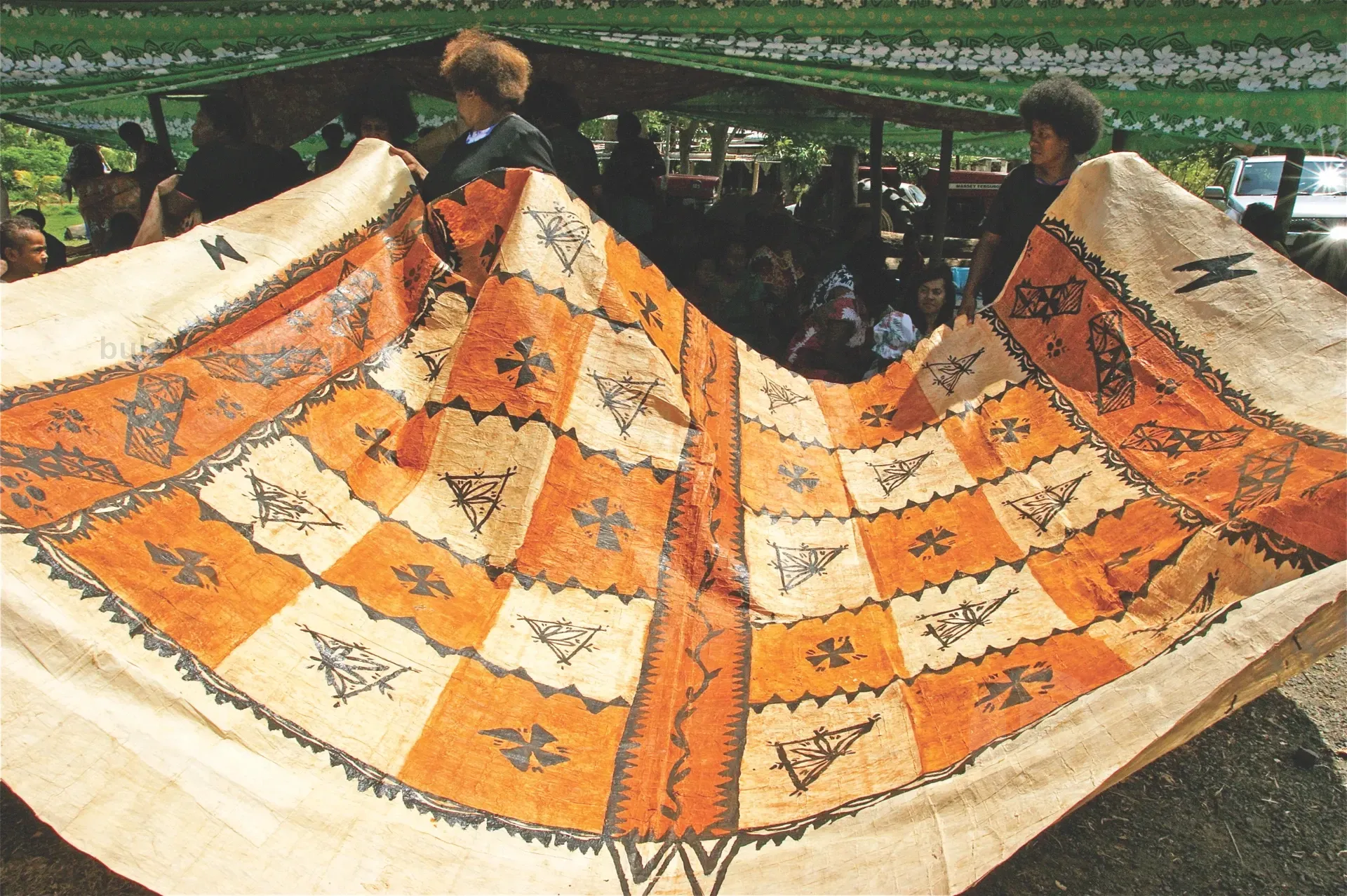 They are two contrasting yet defining aspects of traditional Fijian material culture. Masi is a cloth made from tree bark and is an intrinsically practical item, used for clothing, decoration, canoe sails, turbans, mosquito nets, and ceremonial. Tabua are teeth of the sperm whale and have no intrinsic value. Their value is ineffable, mystical, and unchallenged as the most important item in Fijian Material Culture.