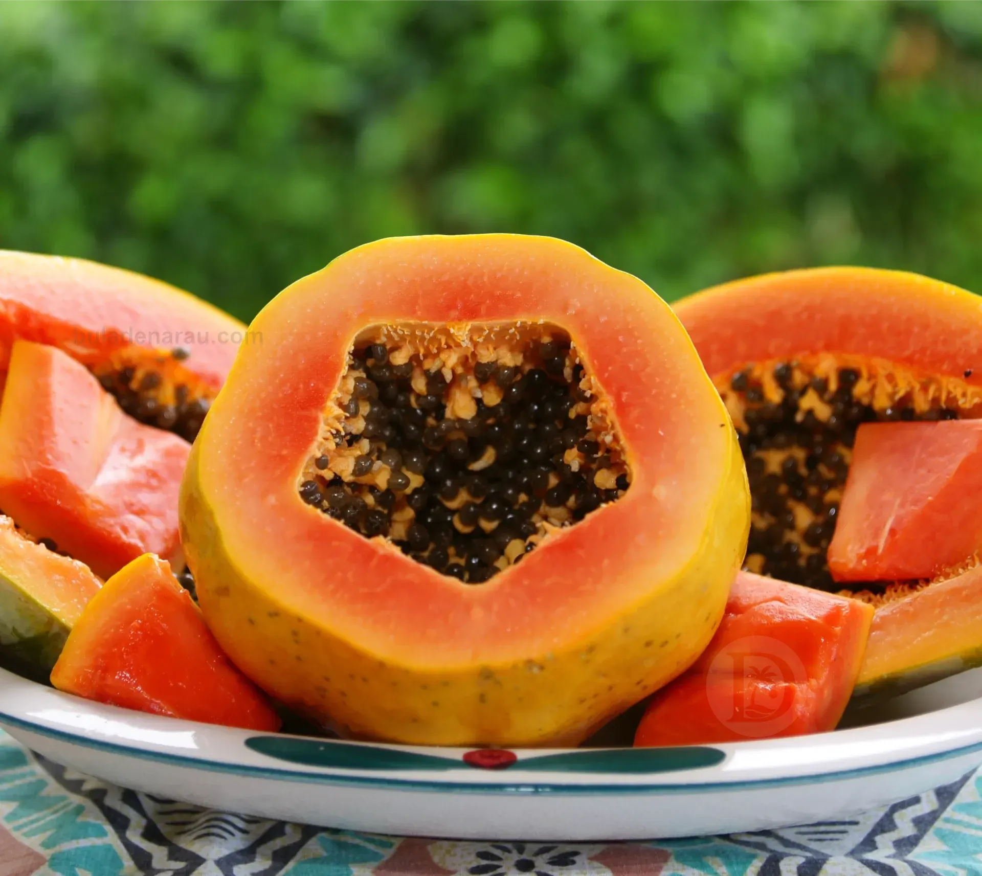 Not only does papaya taste good but it also packs a nutritional punch containing good fibre, anti-oxidants and vitamins. The fruit contains small black seeds, which although edible, are usually discarded.