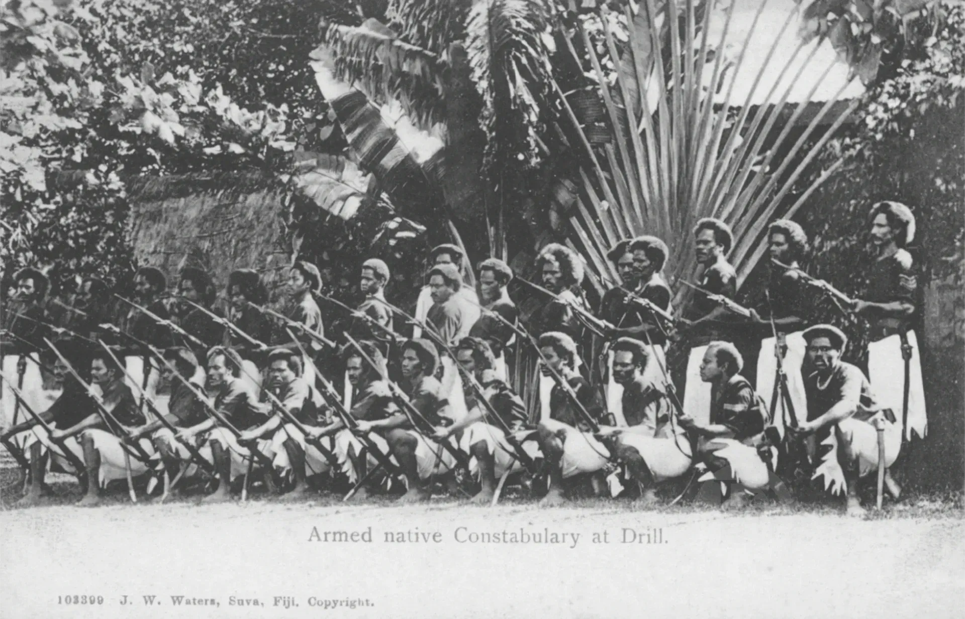 meke’.  Meke is the Fijian equivalent of song, especially important in an oral society for remembering and describing activities, history, events and traditions.  In the early 1900s the Armed Native Constabulary had their own single verse mekethat went as follows: