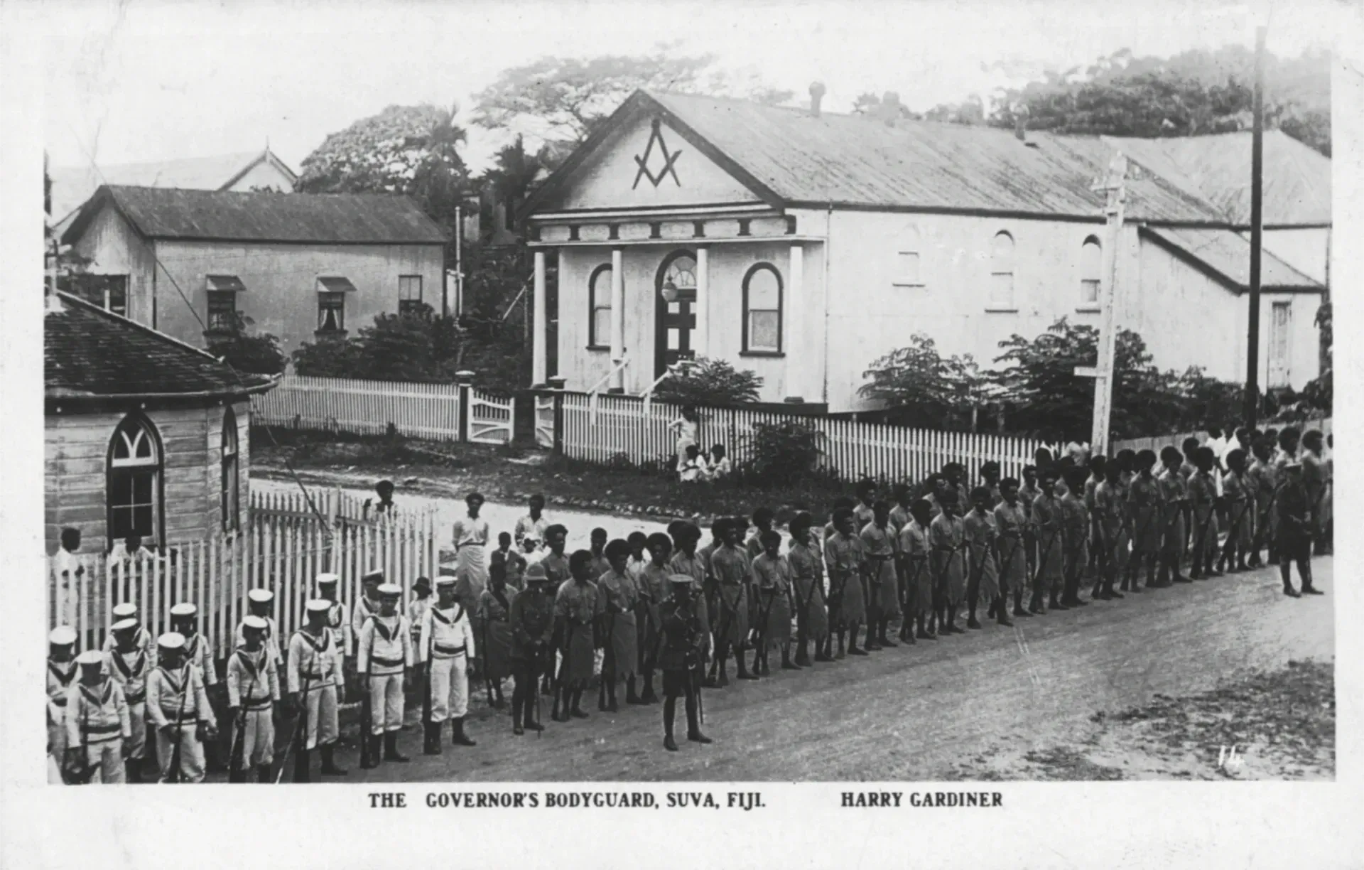 In colonial times this was known as Government House and was the home of the Governor of Fiji.  Originally the guard would have been a soldier of the Armed Native Constabulary, ANC.  The ANC was replaced by the Royal Fiji Military Force (RFMF), which is now known as the Republic of Fiji Military Forces.